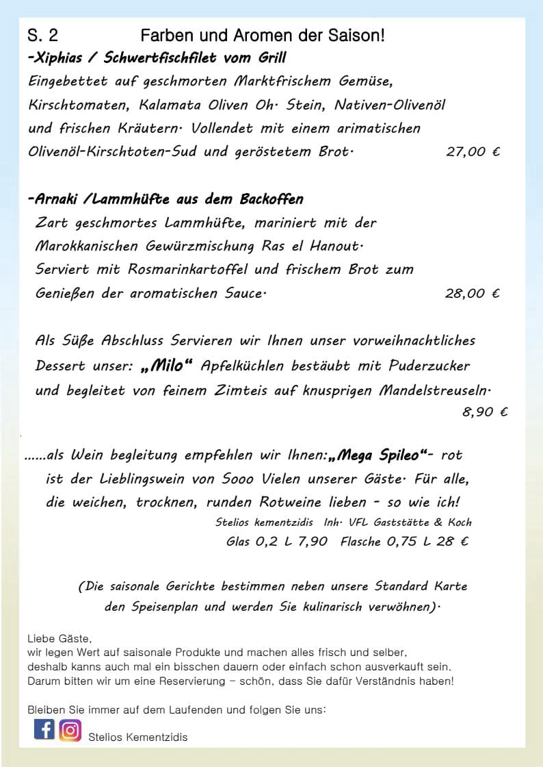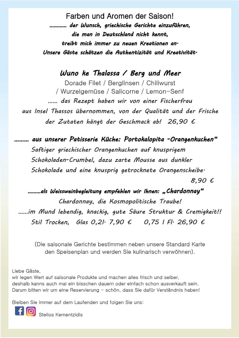 ( Die saisonale Gerichte bestimmen neben unsere Standard Karte