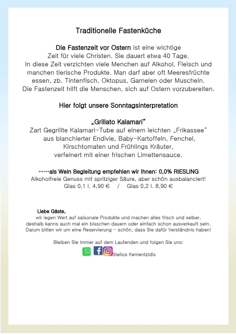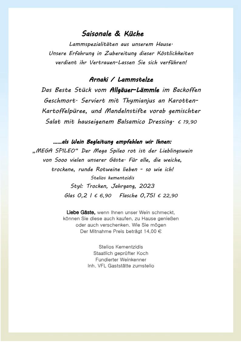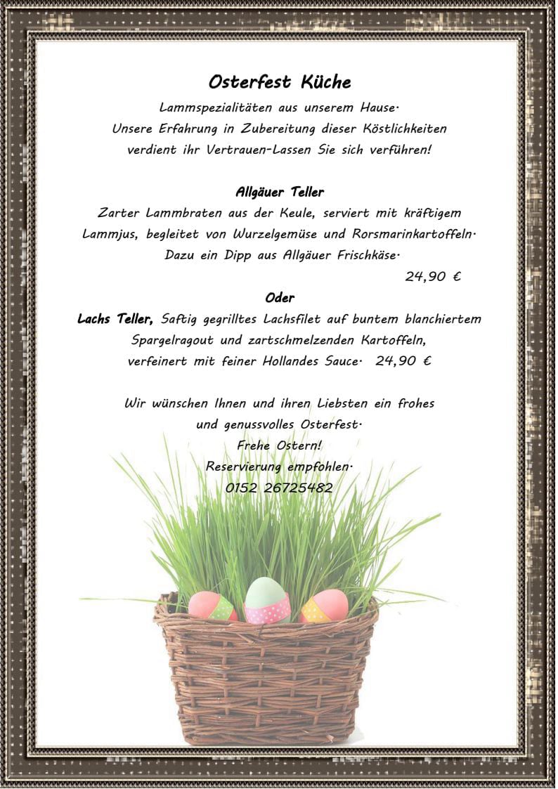 den Speisenplan und werden Sie kulinarisch verwöhnen)
